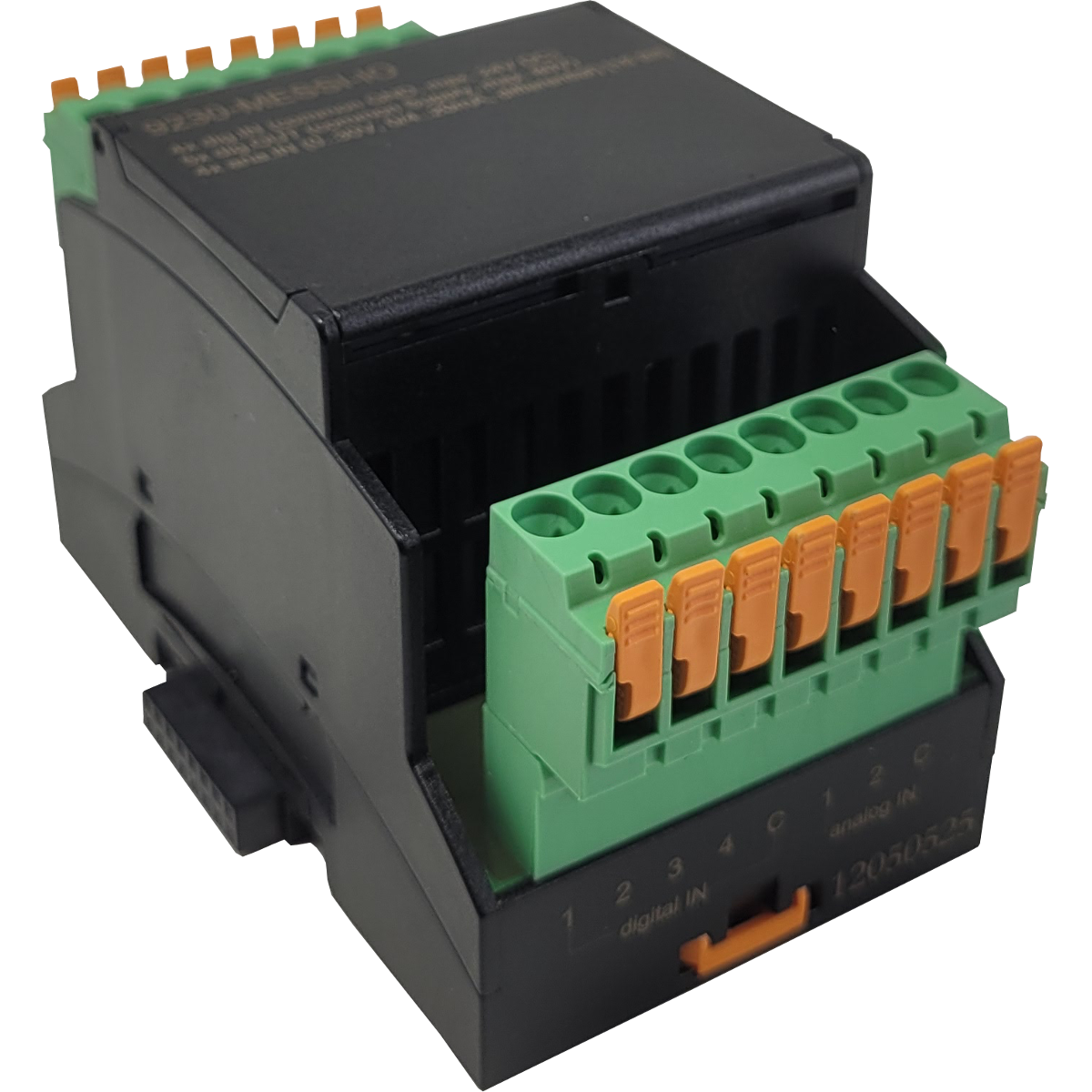 Removable Phoenix spring-clamp for IO: 4x digital IN with common ground, maximum 24V DC 5x digital relay output with common power supply, maximum 80V and 1.25A 4x analog IN (switchable between voltage [0..30V], current [0/4..20mA] and differential measurement) |