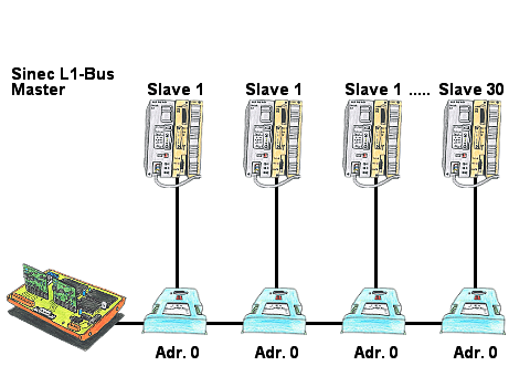 - Computers have an optional possibility of attendance, as Master or Slave, on Sinec-L1-bus