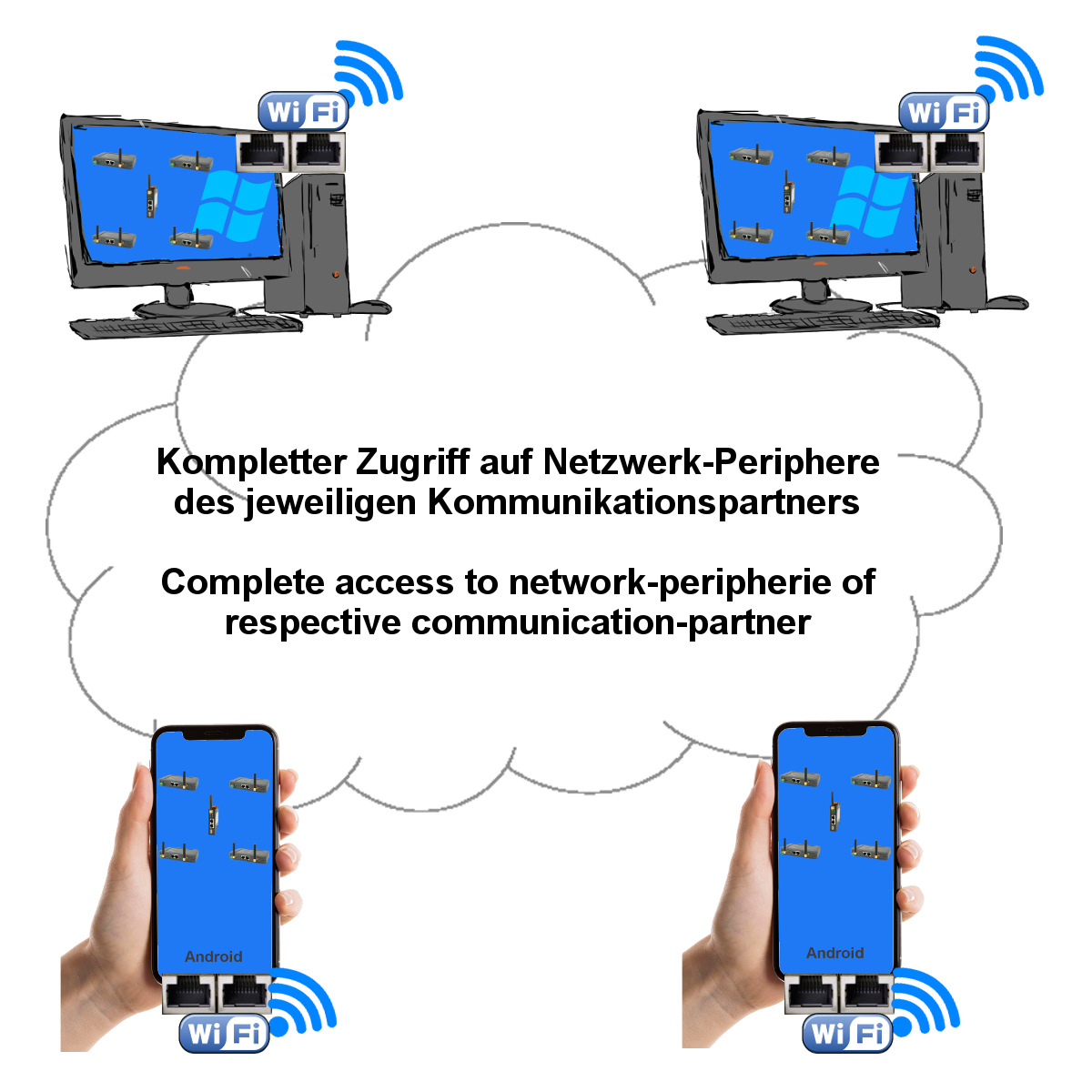 Die Option "9354-SW-O-SWCONNECT" ermöglicht Zugriff/Nutzung der Netzwerk-Schnittstellen (LAN und WIFI) des anderen PCs.